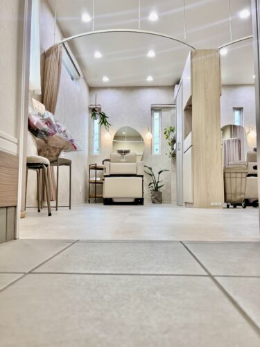 rapportは段差のないバリアフリー設計を採用しています。足腰に不安のある方や車椅子をご利用の方も、安心してご来店いただけます。駐車場からそのままフラットにサロンへお入りいただけますので、どうぞお気軽にお越しください。
